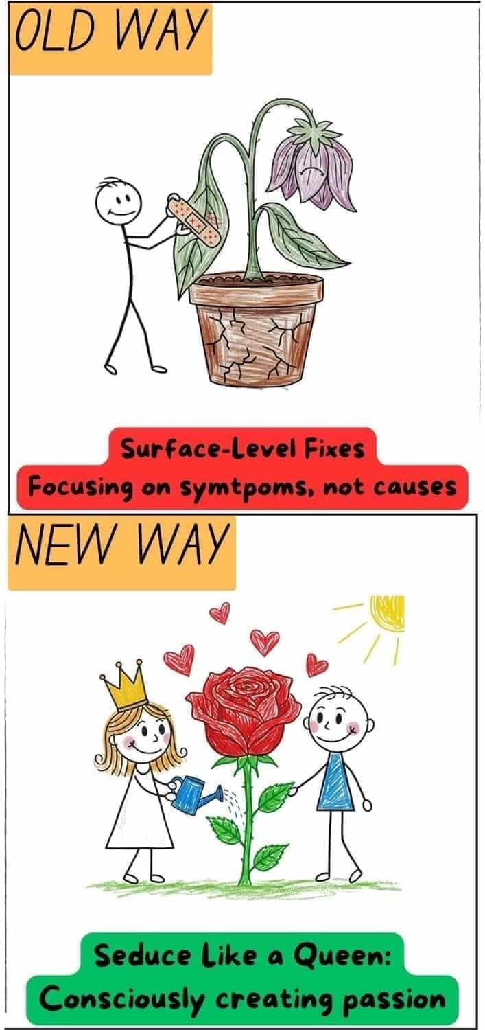 ❌ Buying new lingerie or a single romantic dinner is no longer enough to bring back that old passion (the effect is short-lived).